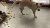 But as soon as she walked in, she was met with chaos! She saw the remains of her rubber gloves, which were completely shredded and chewed.