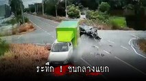 ขับตามใจบรรลัยเกิด เก๋งขับตัดหน้ารถบรรทุกถูกชนโครม