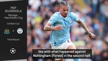 Manchester City's Pep Guardiola talks about Kalvin Phillips after he played at centre back against Barcelona
