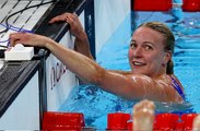 00:00توجت السويدية سارة شوستروم بالميدالية الثهابية لسباق مئة متر سباحة حرة سيدات