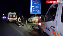 Trafik levhasına çarpan otomobil 50 metre savruldu