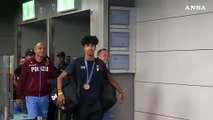Parigi 2024, Mattia Furlani arriva a Fiumicino con al collo la medaglia di bronzo