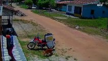 Cachorro caramelo furta marmita enquanto entregador estava distraído