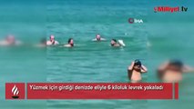 Yüzmek için girdiği denizde eliyle 6 kiloluk levrek yakaladı