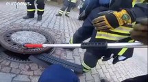 شاهد: رجال أطفاء يهرعون لإنقاذ فأر سمين علق في غطاء فتحة صرف صحي بألمانيا