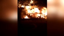 Sancaktepe'de hem iş yeri hem de ev olarak kullanılan bir gecekondu bilinmeyen bir nedenle alev alev yandı. Yangın, İstanbul Sancaktepe ilçesi, Akpınar Mahallesi, Şöhret Sokak üzerinde saat 04.50 sıralarında meydana geldi. Sancaktepe'de gecekondu alev alev yandı İSTANBUL - Sancaktepe'de hem iş yeri hem de ev olarak kullanılan bir gecekondu bilinmeyen bir nedenle alev alev yandı. Yangın, İstanbul Sancaktepe ilçesi, Akpınar Mahallesi, Şöhret Sokak üzerinde saat 04.50 sıralarında meydana geldi. İddiaya göre, hem iş yeri, hem de ev olarak kullanılan bir gecekondu da bilinmeyen bir nedenle yangın çıktı. Yangın bir anda büyüyerek tüm gecekonduyu sardı. Alevlerin çıktığını gören çevredeki vatandaşlar itfaiye ekiplerine haber verdi. Durumun bildirilmesi üzerine olay yerine itfaiye, polis ve sağlık ekipleri sevk edildi. Olay yerine gelen itfaiye ekipleri alev topuna dönen gecekonduyu yaklaşık 1 saatlik söndürme çalışmalarının ardından kontrol altına aldı.