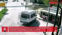 Genç kızlar saniyelerle kurtuldu! Kontrolden çıkan minibüs...
