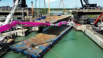 Il ponte dei Navicelli torna al suo posto, video dal drone
