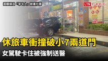 恐怖!休旅車衝3次撞破小7兩道門卡住 女駕駛被強制送醫(民眾提供)