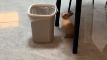 The bunny was having a great time exploring his new space when Rochelle’s son decided to visit him.