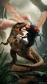 Dinosaur fighting with fly