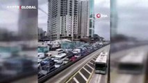 İstanbul'da E-5 Beylikdüzü Güzelyurt'ta trafiği kilitleyen kaza anı görüntülendi