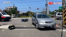轎車左轉與機車碰撞 外送員31日開放性骨折送醫(民眾/警方提供)