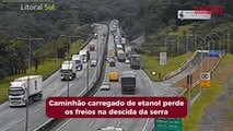 DESCONTROLADO | Um caminhoneiro passou por um susto na noite desta quarta-feira enquanto descia a serra da BR 376, no Paraná rumo à Santa Catarina. O caminhão carregava 12 toneladas de equipamentos de academia e perdeu os freios. Ele quase tombou, mas conseguiu pegar a área de escape, parar o caminhão sem se machucar e evitou uma tragédia.