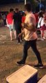 Joven alcoholizada rompe un cantarito con la cabeza