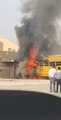 احتراق حافلة مدرسية خالية من الطالبات في رأس الخيمة