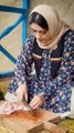 The first food recipe that I want to share with you is my favorite dish, Bademjan Kebab, which I always make using my grandmother's recipe. This dish is vegetarian and its main ingredients include eggplants, aromatic green leaves, walnuts, and pomegranate paste. The resulting taste will leave you speechless! The curved plate with a round stone we use to grind and mix the raw food ingredients is called Namak-yar. It is a very old way of grinding used by locals. Grinding ingredients by Namak-yar takes me back to my childhood when my grandmother made this food with her kind hands.