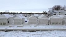 Lakefront homes in Ontario Canada encased in ice