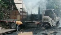 ELN incineró tres camiones en la vía Quibdó – Medellín, tras el anuncio del fin de amenazas