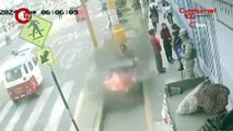 Kaldırımda adım atarken ölümden dönen kadın yanarak boşluğa düştü