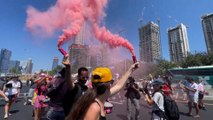 01:01Estamos protestando en favor del fin de la guerra y la liberación de nuestros hogares.