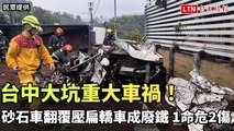 台中街頭晃動片!貨車吊臂扯落號誌 路邊轎車秒變苦主