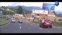 Video: pasó luz roja y volcó tras choque