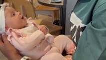 Adorable 5-month-old baby girl can't stop giggling at her big bro's silly antics