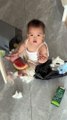 Cute baby - Bayi lucu itu mengobrak-abrik tempat sampah dan ditakuti oleh ayahnya