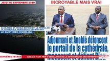 Le titrologue du Jeudi 03 Septembre 2020/ Adjoumani et Anoblé défoncent le portail de la cathédrale, menacent et défient Dieu