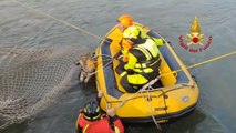 Lupa intrappolata in un canale artificiale: salvata dai vigili del fuoco
