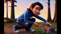 This is an animated video in which a small elephant is in human hands.