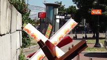 I cavalli di frisia dipinti con fiori, la "normalità " della guerra a Kiev