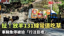 扯!放羊131線彎道吃草 車輛急停被迫「行注目禮」(民眾提供)