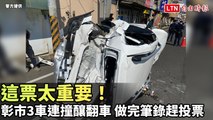 這票太重要!彰市3車連撞釀翻車 駕駛做完筆錄不忘趕投票(警方提供)