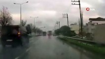 Yağmurda dorsesi kayan tır paniğe neden oldu