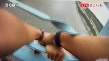 與死神拔河!女碩士生要跳溪 警員飛撲搶救緊抓不放(警方提供)