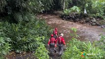 00:29del río y este cae. Posterior a esto, baja una cabeza de agua y ellos lo pierden de vista.