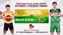 Old rivals meet again this Tuesday, October 1, as the San Sebastian Golden Stags face the Benilde Blazers at 11 a.m., followed by the Letran Knights and San Beda Red Lions at 2:30 p.m. Catch the games live on Heart of Asia and GTV, as well as NCAA Philippines and GMA Sports PH social media platforms.