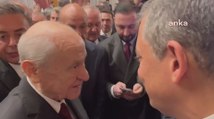MHP Genel Başkanı Devlet Bahçeli, TBMM'nin yeni yasama yılının açılış resepsiyonunda CHP Genel Başkanı Özgür Özel ile tokalaşıp ayaküstü sohbet etti. Bahçeli, partisinin grup toplantısında sert sözlerle eleştirdiği Özel'e, "Birbirimizi kırmıyoruz inşallah. Üzülme! Bazen siyaseten söylememiz gerekenler oluyor." dedi. Özel ise, "Herkes doğru bildiğini söylüyor. Önemli olan saygıda ve sevgide eksiklik göstermemek." yanıtını verdi. (ANKARA) - MHP Genel Başkanı Devlet Bahçeli, TBMM'nin yeni yasama yılının açılış resepsiyonunda CHP Genel Başkanı Özgür Özel'e, "Birbirimizi kırmıyoruz inşallah. Üzülme! Bazen siyaseten söylememiz gerekenler oluyor" dedi. Özel de Bahçeli'ye, "Herkes doğru bildiğini söylüyor. Önemli olan saygıda ve sevgide eksiklik göstermemek" diye yanıt verdi.CHP Genel başkanı Özgür Özel ve MHP Genel Başkanı Devlet Bahçeli, TBMM'nin yeni yasama yılının açılışı kapsamında düzenlenen resepsiyonda selamlaştı. İki lider ayaküstü sohbet etti.