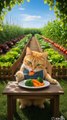 cat eating vegetables