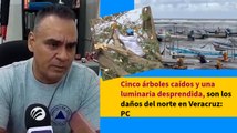 Cinco árboles caídos y una luminaria desprendida, son los daños del norte en Veracruz: PC