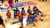 The Jr. NBA Her Time to Play clinic in Abu Dhabi saw 130 girls aged 11-14 from the local community participate to a 45-minute leadership panel, with opening remarks by NBA Commissioner Adam Silver, and a 55-minute on-court basketball session with Sylvia Fowles, Allison Feaster and Jamad Fiin.