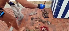 Ignacio mostrando lo que extrae en un día cualquiera de los fondos de Las Canteras.