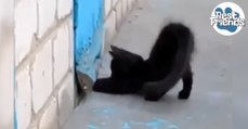 Ein kleines Kätzchen scharrt aufgeregt an einer Tür. Was sich dahinter verbirgt, glaubt man nicht!