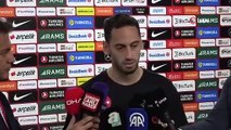 Türkiye A Milli Futbol Takımı oyuncusu Hakan Çalhanoğlu, Karadağ'ı 1-0 yendikleri maç sonrası gruptan çıkma şanslarını yüzde 90 olarak değerlendirdi. İzlanda maçının zorluğuna dikkat çeken Çalhanoğlu, takımına güvendiğini ifade etti. - Hakan Çalhanoğlu: "Gruptan çıkma şansımızı yüzde 90 görüyorum" SAMSUN - Türkiye A Milli Futbol Takımı oyuncusu Hakan Çalhanoğlu, "Ben gruptan çıkma şansımızı yüzde 90 görüyorum" dedi. Milli futbolcu Hakan Çalhanoğlu, Türkiye'nin Karadağ'ı 1-0 üstünlükle geçtiği karşılaşma sonrası açıklamalarda bulundu. İlk olarak Karadağ karşılaşmasını değerlendiren Çalhanoğlu, "Şimdi şöyle düşünmek lazım. Rakibi küçültmemek lazım. Sonuçta onlar da iyi oyunculara sahipler. Tabii zor bir zeminde biraz zorlandık. Sizler de eminim görmüşsünüzdür. Sonuna kadar inandık. Bugün oyundan kopmamaya çalıştık. Önemli olan buydu. Tabii golü bulduktan sonra biraz daha rahatladık. Ama en önemlisi tabii ki oyundan düşmemekti. Galibiyet aldığımız için çok mutluyuz" dedi.
