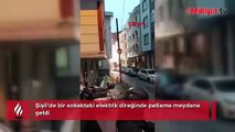 Şişli’de elektrik direğinin patlama anı kamerada! Mahalle sokağa döküldü