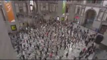 Belçika'nın Anvers'de bir tren istasyonunda dans eden yolcul