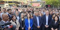 Diyarbakır Valiliği’nin yasakladığı 'Tecride Karşı Özgürlük Mitingi' için toplanan DEM Partililere polis izin vermedi. Kalabalık, Sanat Sokağı'nda basın açıklaması yapmak üzere toplandı. (DİYARBAKIR) - Diyarbakır Valiliği'nin yasakladığı miting için Sanat Sokağı'nda toplanan ve İstasyon Meydanı'na yürümek isteyen kalabalığa polis izin vermedi. Emniyet yetkililerinin DEM Partililerle yaptığı görüşmeler sonucunda, Sanat Sokağı'nda basın açıklaması yapılmasına müsaade edildi. DEM Partililer, Diyarbakır Valiliğince yasaklanmasına karşın İstasyon Meydanı'nda yapacaklarını duyurdukları "Tecride Karşı Özgürlük Mitingi" için toplandı. Kentte sabah erken saatlerden itibaren polis ekipleri, mitingin yapılacağı belirtilen İstasyon Meydanı ile kentin birçok noktasında yoğun güvenlik önlemleri aldı. Çok sayıda polis görevlendirilirken, birçok noktada TOMA'lar hazır bekletildi. İstasyon Meydanı'na çıkan caddeler trafiğe kapatıldı.