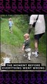 A man tries to casually hop over a small puddle, but his foot lands right in the middle, splashing water everywhere. As he looks down in disappointment, a dog calmly walks by, jumps perfectly over the puddle, and gives him a look like, "Amateur!"